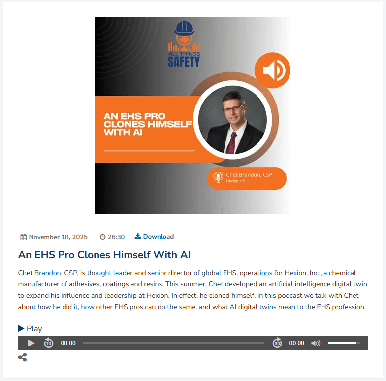 Click here to listen to the podcast: https://www.ishn.com/media/podcasts/5177-all-things-safety/play/140-an-ehs-pro-clones-himself-with-ai